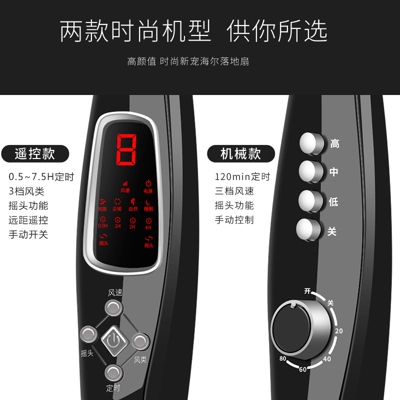 海尔落地扇家用电风扇遥控静音 办公室风扇 学生宿舍立式摇头风扇 五叶飓风 全国联保 大风力 超静音